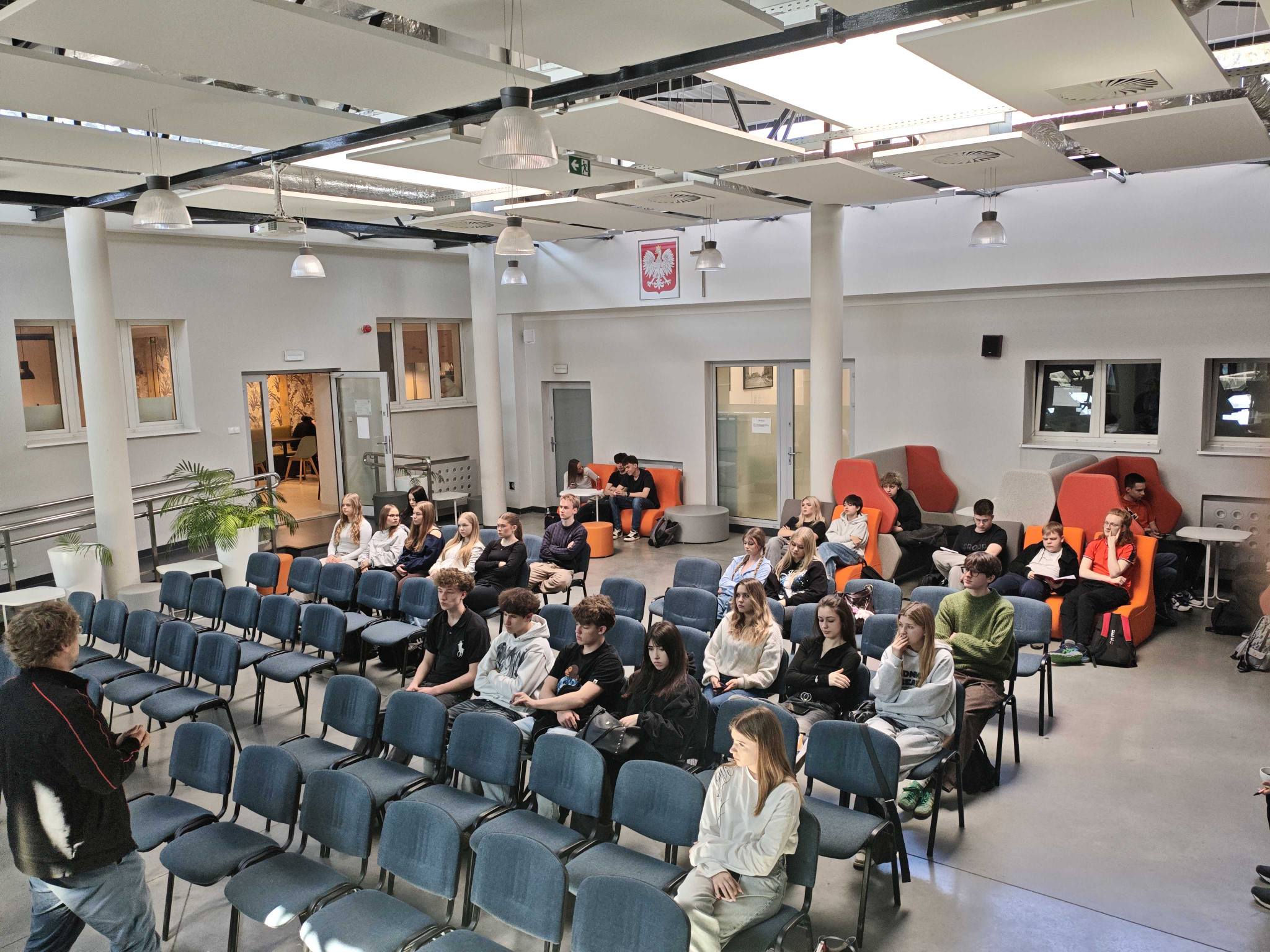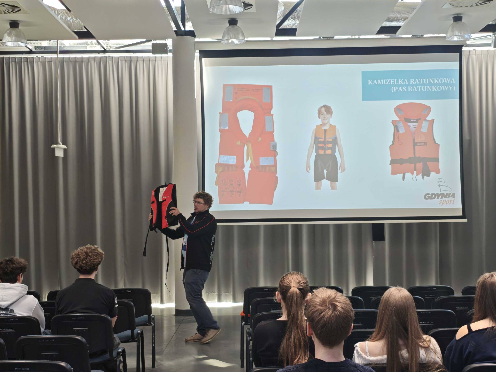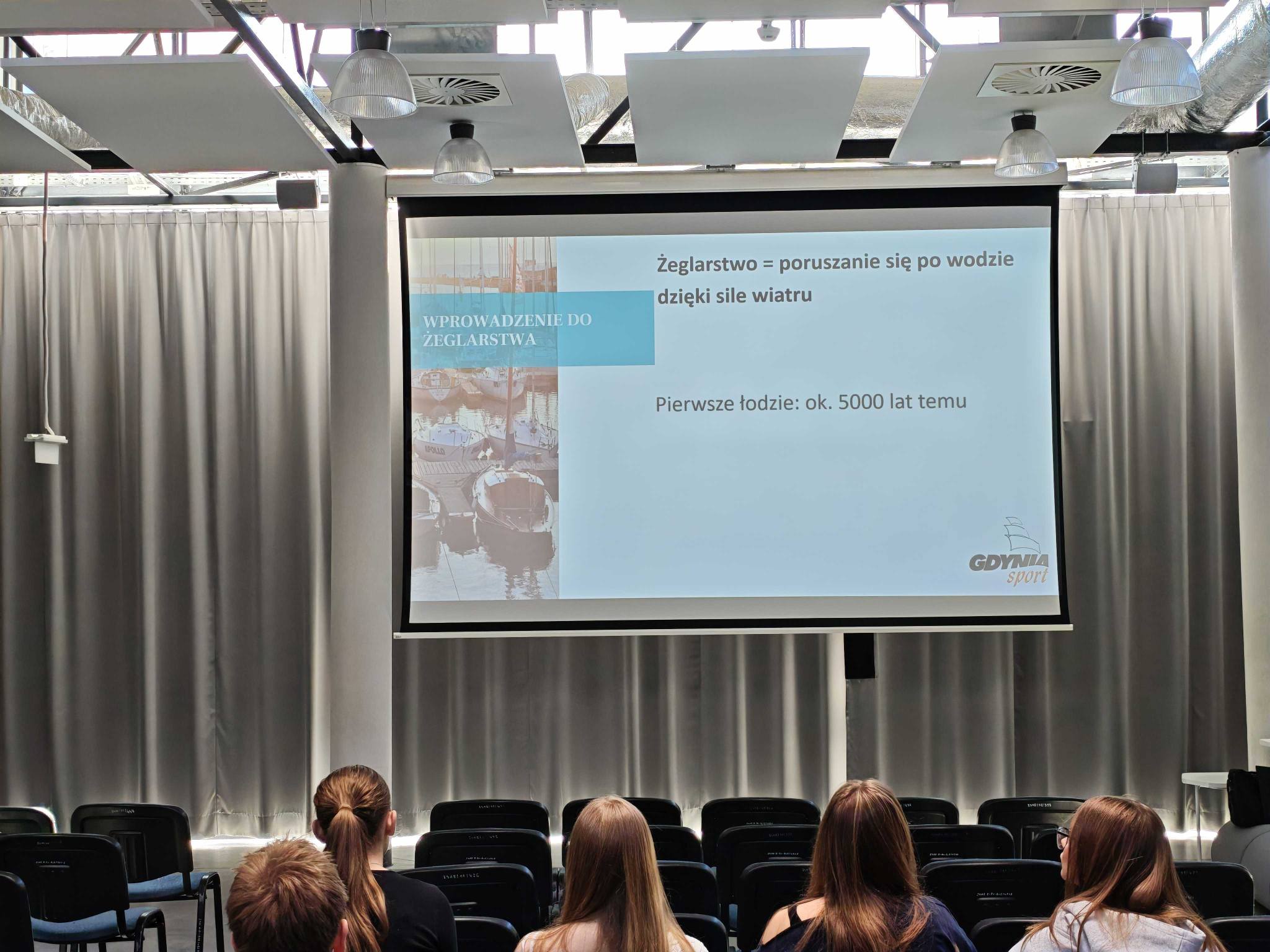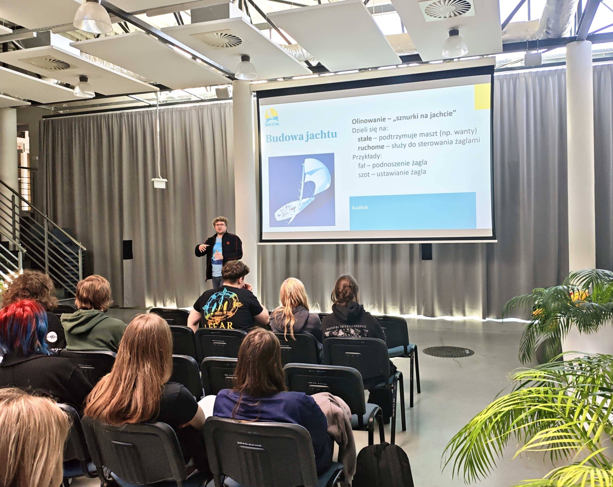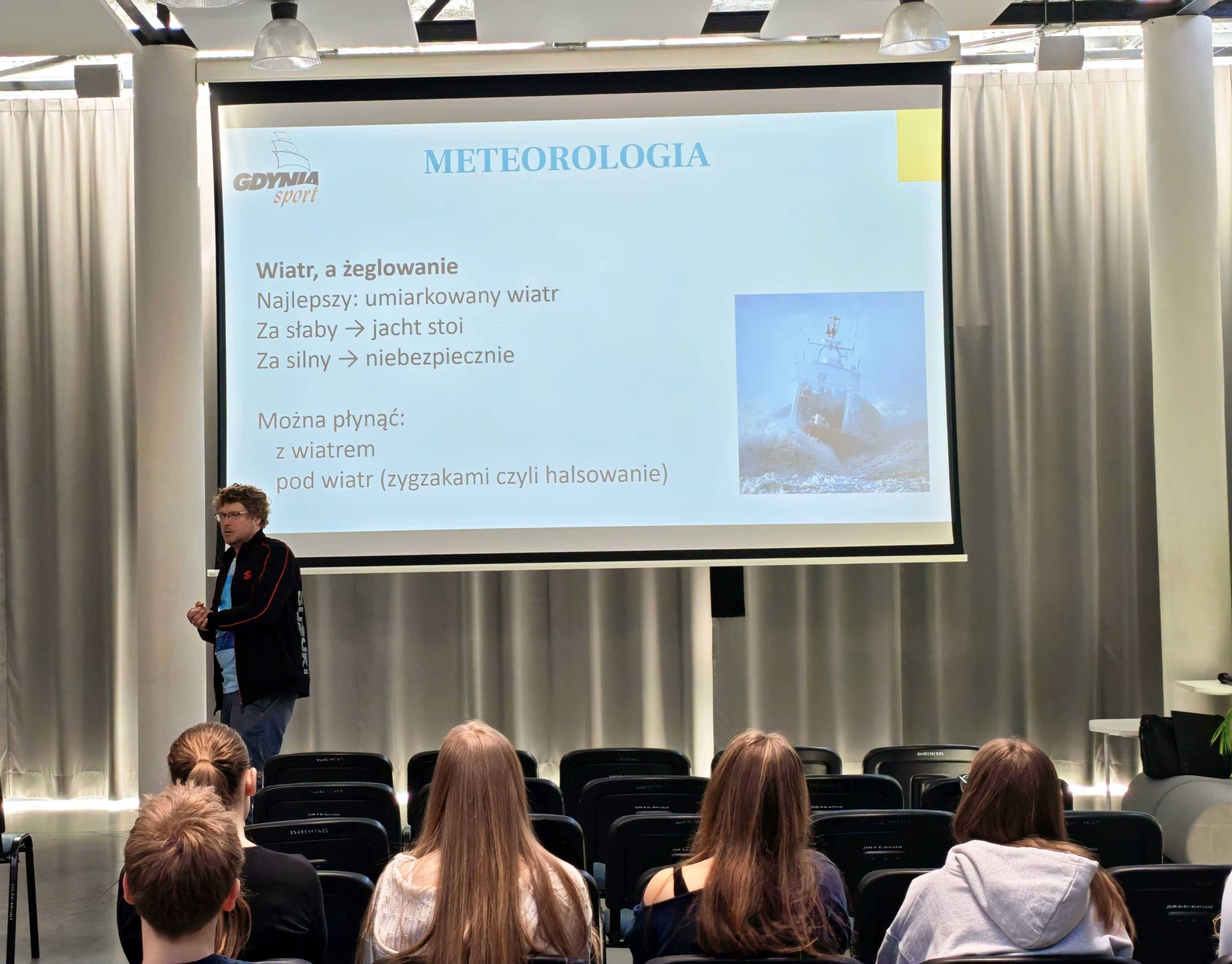 W poniedziałek 20.04.2026 r. w auli miał miejsce I etap projektu - Spotkania w szkołach, odbyło się spotkanie z instruktorem żeglarstwa Panem dr Jakubem Szymańskim, który podczas szkolenia omawiał zagadnienia związane z tematyką żeglarską.