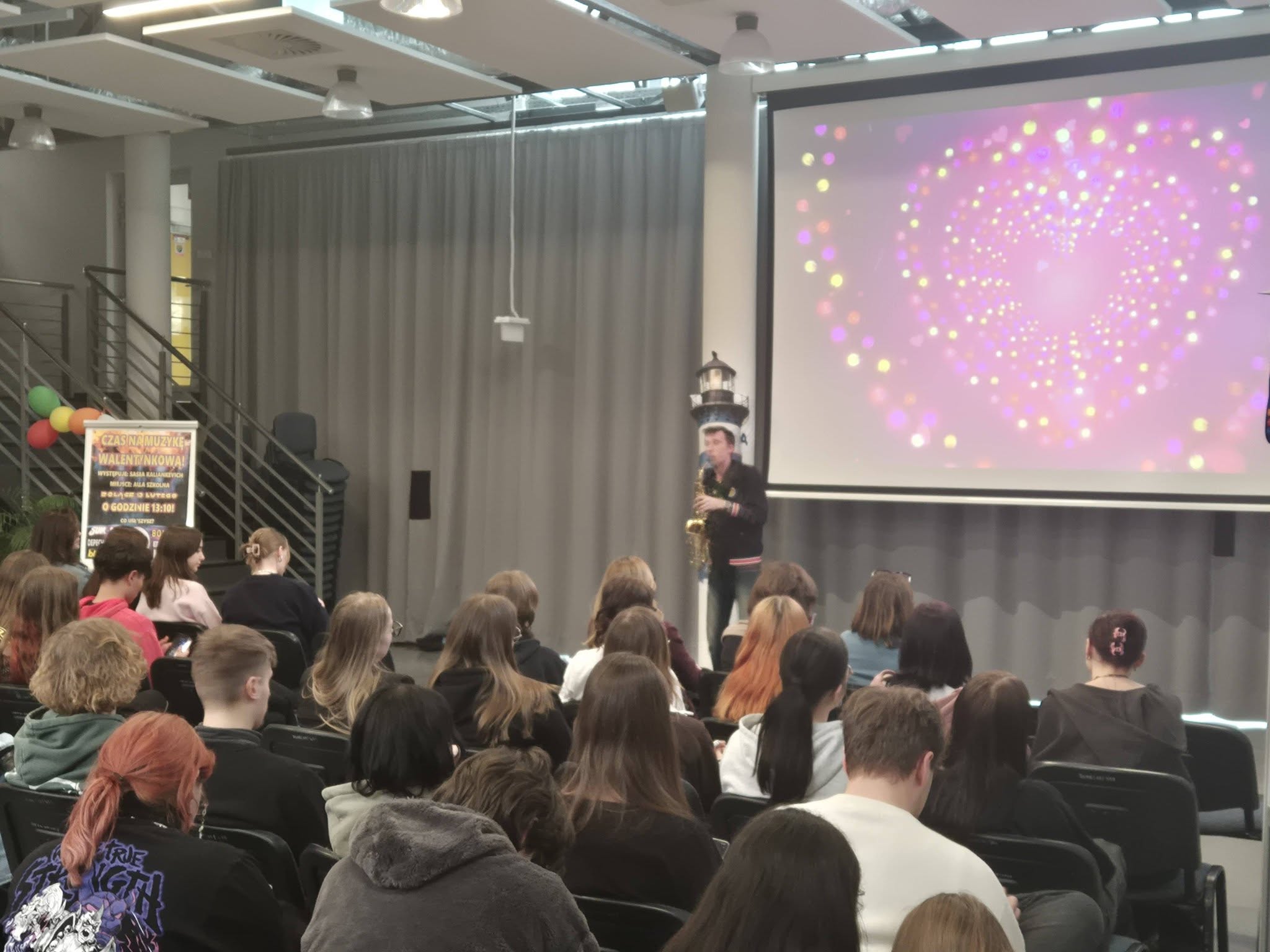 Dodatkową atrakcją tego dnia był Walentynkowy koncert w wykonaniu ucznia klasy 5C. Z okazji Walentynek Aliaksandr Kaliankevich dał wyjątkowy koncert, który wprowadził wszystkich w romantyczny i radosny nastrój. Aliaksandr zaprezentował swoje umiejętności, grając na klarnecie oraz saksofonie, zadziwiając słuchaczy brzmieniem i muzyczną wrażliwością.